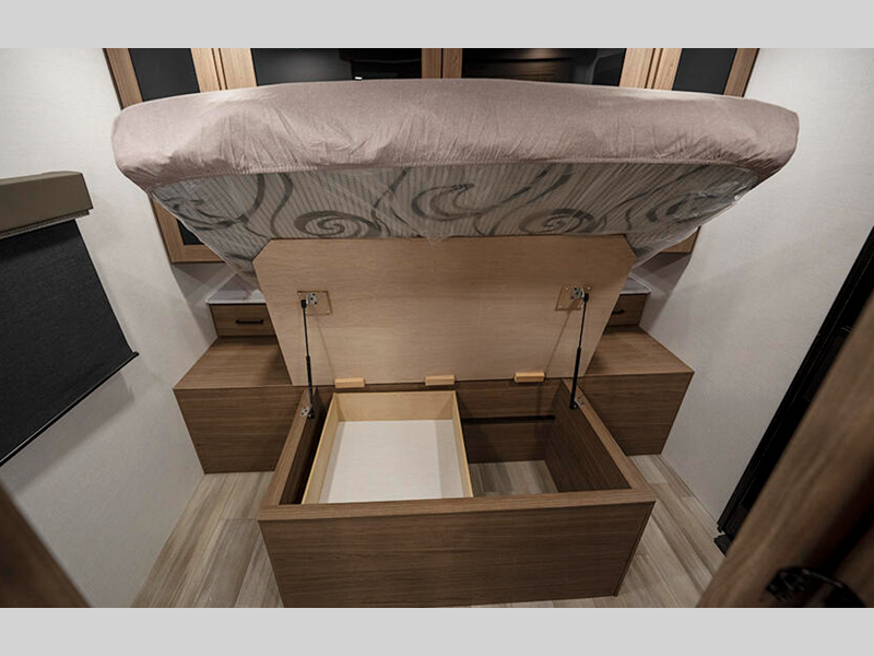Exterior highlights include Step Above steps on all doors, Goodyear Endurance tires, exterior awning controls, and more. Inside, you'll enjoy fully functional oversized atrium windows, soft closet hidden hinges, and no carpet to make cleaning up easier than ever.