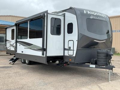 Each one of these Forest River Flagstaff Classic fifth wheels or travel trailers will be your home on wheels! Their quality craftsmanship and attention to detail shines through the enclosed underbelly, the fully laminated walkable roof, and six-sided full-aluminum frame. Towing your unit will be easy with the Goodyear Endurance tires plus RoadTech tire pressure monitoring. Additional exterior features include a 200W solar panel, slam baggage doors, a Key-Alike lock system, and double 30 lb. LP tanks to name a few conveniences. Head inside to find a residential style gas range, solid surface kitchen and bath countertops, soft close hidden cabinet hinges, and more comforts!