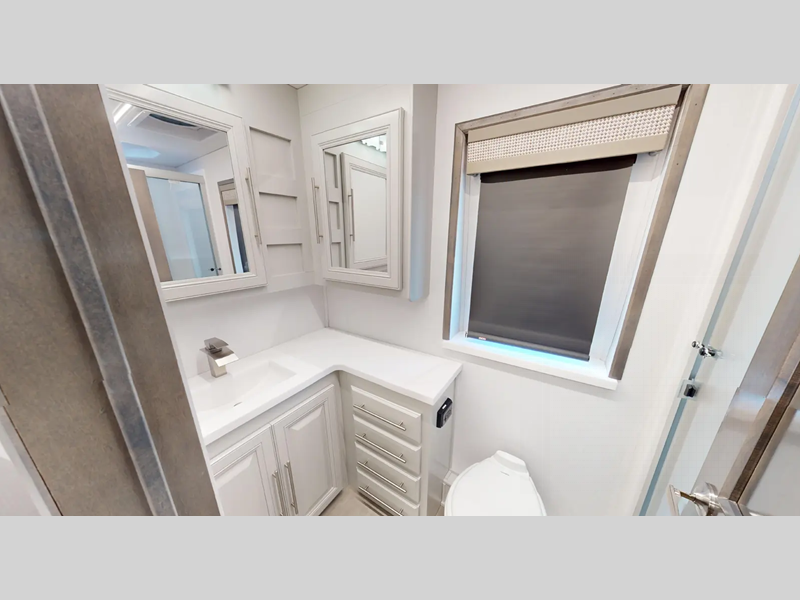 Travel with the Arctic package and go off the grid with the solar panel. The MORryde 1.5" tubular steel chassis up-fit will hold up through every adventure you throw its way. Your trips will be truly relaxing with Thomas Payne furniture to sit on, a residential stainless steel appliance package to prepare home cooked meals, and a Tilt-A-Bed for a good night's rest each night.