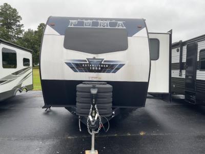 If you're looking for family-fun adventures, then you need one of these Forest River Puma travel trailers! They are built rugged, easy to tow, and jam packed with features. The Darco wrapped underbelly will help protect your unit, and the roof and side mount solar prep gives you the option to add off-grid power. Inside, the Congoleum linoleum will be easy to keep clean, and the night roller shades will provide privacy when it's time to turn in. You'll also enjoy an electric awning with an LED light strip plus an AM/FM/Bluetooth stereo and two outside speakers to keep the party going!