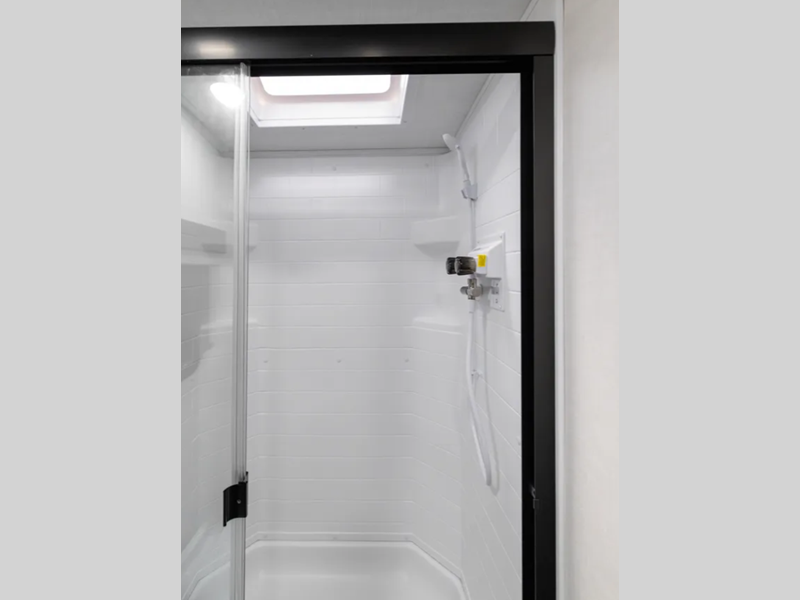 Each travel trailer will have you feeling right at home with its hidden hinge cabinet doors, plus solid surface kitchen countertops and roller shades for added privacy. The Showermiser water saving system is sure to come in handy while camping over the weekend, and the TV with a stereo ensures you'll never go bored. Towing is made hassle-free thanks to the power tongue jack, along with Dexter Torflex axles and Goodyear Endurance tires.