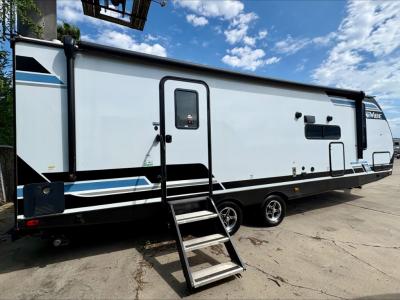 Sleeps 3 Slides 1 Length 31 ft 11 in Ext Width 8 ft Int Height 6 ft 8 in Hitch Weight 884 lbs Dry Weight 6464 lbs Cargo Capacity 3220 lbs Fresh Water Capacity 39 gals Grey Water Capacity 74 gals Black Water Capacity 32 gals Available Beds Queen Refrigerator Type Stainless Steel 12 Volt Quick Cool Refrigerator Size 10 cu ft Cooktop Burners 3 Number of Awnings 1 LP Tank Capacity 20 lbs Water Heater Type On Demand Tankless AC BTU 13500 btu TV Info LR LED HD TV Awning Info 20' One Touch Electric with LED Night Light Number of LP Tanks 2 Shower Type Standard Similar Travel Trailer Floorplans