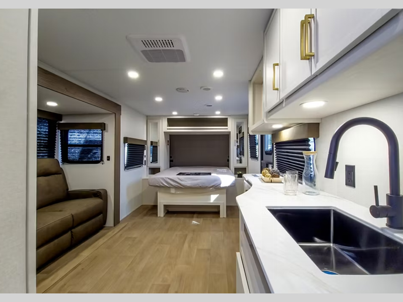 The TPO roof membrane is ultra durable, and the high-density roof insulation meals you can extend your camping season. You will appreciate oversized tank capacities, a power tongue jack, an all-in-one utility center, plus many more exterior conveniences. Step inside to find a deep-seated stainless steel sink, residential countertops, solid hardwood drawer fronts, and upgraded residential furniture to name a few at-home comforts. These travel trailers include multiple packages, like the Power Package that features a JBL exterior speaker and back-up camera prep, along with the Solar Package with 600W solar prep, a 2000W inverter prep, and more!