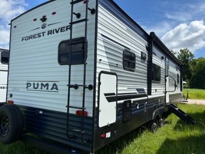 If you're looking for family-fun adventures then you need one of these Palomino Puma fifth wheels or travel trailers! They are built rugged, easy to tow, and jam packed with features. The Darco wrapped underbelly will protect your units vitals and the AlphaPly roofing membrane covers it. They also have new aluminum wheels and a powder coated steel I-beam frame. Inside, the Congoleum linoleum will be easy to keep clean, and the night roller shades will provide privacy when it's time to turn in. You'll also enjoy an electric awning with an LED light strip plus an AM/FM/Bluetooth stereo and two outside speakers to keep the party going!
