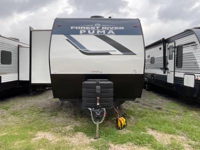 If you're looking for family-fun adventures then you need one of these Palomino Puma fifth wheels or travel trailers! They are built rugged, easy to tow, and jam packed with features. The Darco wrapped underbelly will protect your units vitals and the AlphaPly roofing membrane covers it. They also have new aluminum wheels and a powder coated steel I-beam frame. Inside, the Congoleum linoleum will be easy to keep clean, and the night roller shades will provide privacy when it's time to turn in. You'll also enjoy an electric awning with an LED light strip plus an AM/FM/Bluetooth stereo and two outside speakers to keep the party going!
