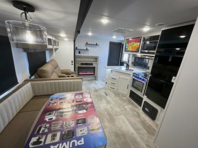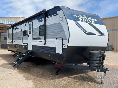 If you're looking for family-fun adventures then you need one of these Palomino Puma fifth wheels or travel trailers! They are built rugged, easy to tow, and jam packed with features. The Darco wrapped underbelly will protect your units vitals and the AlphaPly roofing membrane covers it. They also have new aluminum wheels and a powder coated steel I-beam frame. Inside, the Congoleum linoleum will be easy to keep clean, and the night roller shades will provide privacy when it's time to turn in. You'll also enjoy an electric awning with an LED light strip plus an AM/FM/Bluetooth stereo and two outside speakers to keep the party going!