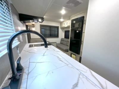 This Shasta i-5 Edition features everything you need for a cozy weekend away a a couple's unit or small family of three or four. The rear of the unit features ample seating with opposing sofa and booth dinette. Each can accommodate a tired camper at night if needed. The kitchen is fully equipped for your camping trips featuring a three-burner cooktop, a microwave cabinet, a large sink, plus a pantry and a refrigerator for food storage. In the front of this unit, a 60" x 74" RV queen bed provides a comfortable night's rest after a full day of fun. Outside, enjoy a nice pass-through storage compartment to easily access all of your outdoor camping gear plus more.