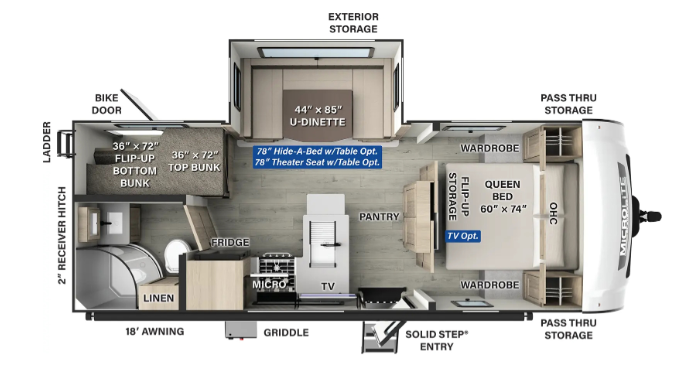 Ron Hoover RV is not responsible for any misprints, typos, or errors found in our website pages. Any price listed excludes sales tax, registration tags, and delivery fees. Manufacturer pictures, specifications, and features may be used in place of actual units on our lot. Please contact us @936-777-6923 for availability as our inventory changes rapidly. All calculated payments are an estimate only and do not constitute a commitment that financing or a specific interest rate or term is available. All prices exclude tax, title, registration, and document fees.